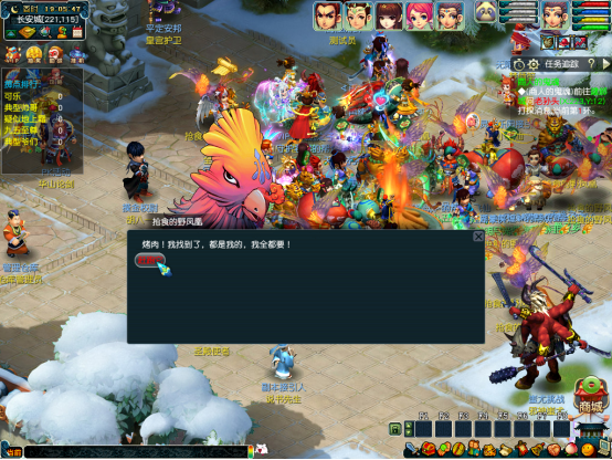 - 🌈 这里需要注意,人离开火堆太远,结算的时候会没有奖励,三次凤凰结束,队长点击火堆取得烧烤,烧烤使用随机给奖励,如果参加的人太多,看不到火堆和凤凰,可以点右下角游戏设置,选择屏蔽玩家
